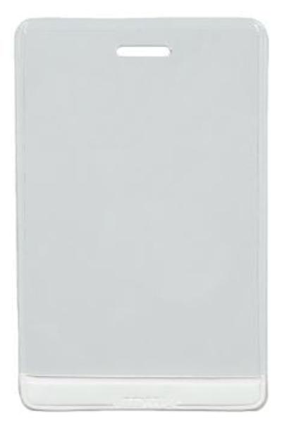 Clear portrait flexible double sided ID card holder with a slot in the centre and one hole either side of the slot. Cost effective card holder for...